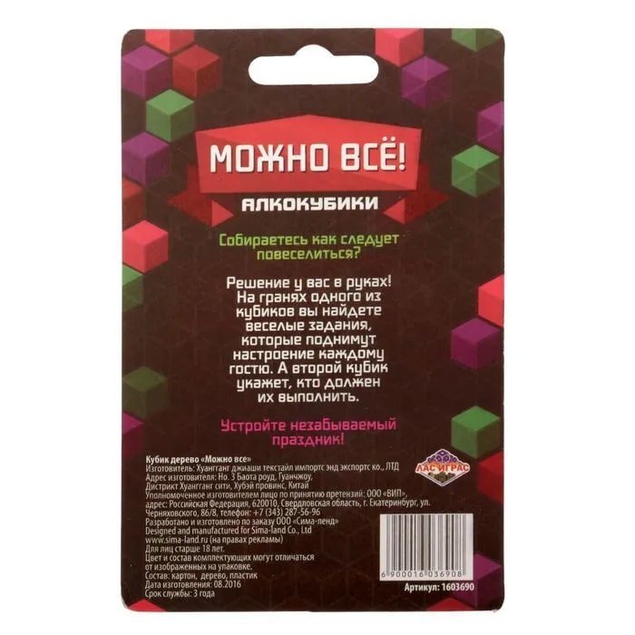 Купить кубик "можно все", алкокубики для принятия решений от 60 руб. с доставкой до пункта выдачи в Белебее. Интернет магазин ДекаМаркет. Оплата при получении.